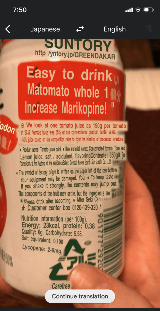 Suntory brand tomato juice. Ready to increase some lycopene, snitches.